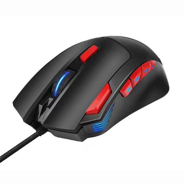 Gaming mouse,7d buttons, 4 color LED light Built-in metal for gaming, red color fire key and scroll button, gray +black color top cover with painting 1.5m textile cables with magnetic ring IC:704 DPI: 3200DPI Rubber+Pu painting